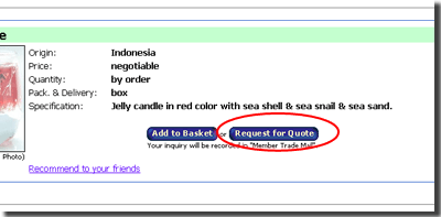 It is easy to reply to a posted trade offer at Itrademarket. You will find a button, ("Request for Quote", "Send Quote" or "Send Message" depending on the type of trade offer) under the detailed description of it.