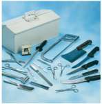 n metal box. Consists of: Stainless chopper Autopsy knife curved, 21.5 cm, stainless, with plastic handle Skinning knife curved, 15 cm, stainless, with plastic handle Boning knife, pointed, ....