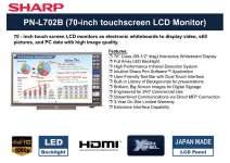 SHARP Model PN-L702B : Full Array LED Backlight High Performance Infared detectionnsystem INTUITIVE SHARP pen software Application User Friendly tool bar with dual touch interface Built in....